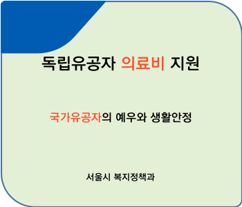이번 포스팅은 서울시 거주하는 독립유공자분들 의료비 지원에 대해 알아보도록 하겠습니다. 서울시에 거주하는 독립유공자 본인·선순위 유족이 지정 의료기관 이용 시 발생한 의료비(진료·입원·약제비) 중 본인부담금 급여비용을 지원함으로서 국가유공자의 예우와 생활안정을 위하여 보훈수당 등을 지급, 촘촘하고 두터운 보훈정책을 추진하는 것으로 독립유공자 본인, 선순위유족 및 세대를 같이하는 배우자는 서울시에서 추진하는 보훈정책으로 내 상황에 맞는 혜택을 받으시기 바랍니다.