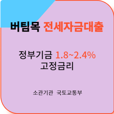 금리가 오르면 제일 고통받는 사람은 전세 대출받은 서민들 입니다. 그래서 오늘은 고금리 시대를 맞아 대출 금리 낮추는 방법이 있을지 알아보다가 청년 버팀목 전세자금대출에 대해 알게 되었습니다. 버팀목 전세자금대출은 근로자 및 서민의 주거안정을 위한 전세자금 대출로써 정부 기금으로 운용되며 1.8~2.4의 고정금리를 제공하는 기금으로 조건에 해당 되시는 분께 활용할 것을 권장해 드리니 정부 자금 대출을 이용하셔서 혜택을 누릴 수 있으면 좋겠습니다.