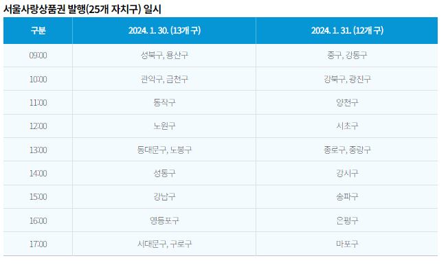 ☞2024 서울사랑상품권 연간 발행 일정 안내