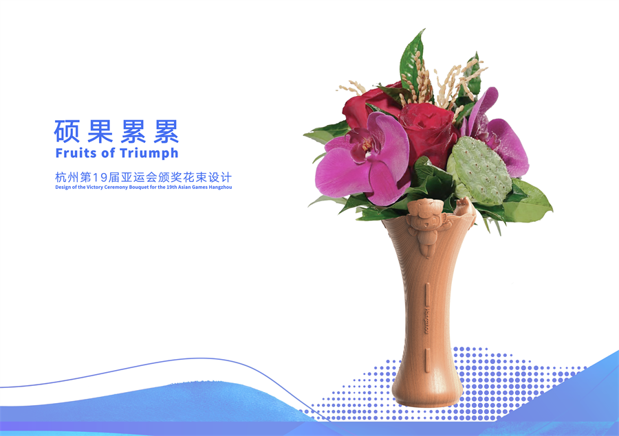 시상식 자료 꽃다발은 시상식 트레이 및 시상식 스탠드의 세 가지 범주로 나뉩니다. 수상 부케는 '풀 프루츠(Full Fruits)'라 불리며, 꽃재료와 꽃도구로 구성, 상패 디자인은 바람에 흔들리는 서호수면을 모티브로 하여 전체적인 표현이 깔끔하고 유선형입니다. 메달 시상대는 다양한 스포츠에서 수상한 선수의 수에 따라 조립할 수 있는 "빌딩 블록" 모듈식 디자인을 채택했습니다.
