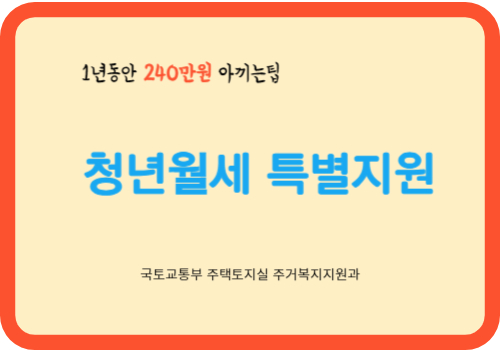 국토교통부는 2월 21일 청년들의 주거비 부담 완화를 위해 월 최대 20만 원씩 12개월분의 월세를 지원하는 청년월세 특별지원 2차 사업 신청을 오는 26일부터 시작한다고 밝혔습니다. 1차 사업은 2022년 8월부터 지난해 8월까지 1년 동안 신청을 받아 요건 심사 후 9만 7000명에게 월세를 지원하고 있습니다. 이번 청년월세 2차 사업은 1차 사업과 동일하게 소득·자산 요건을 갖춘 19세부터 34세까지의 청년 중 부모와 따로 거주하는 무주택자를 대상으로 하며, 기존 1차 사업 또는 지자체 사업에서 월세를 이미 지원받은 청년도 지원이 종료되었다면 이번 2차 사업에 신청할 수 있으니 해당 청년은 1년간 월 20만원씩 지원받을 수 있도록 늦지 않게 신청하세요.