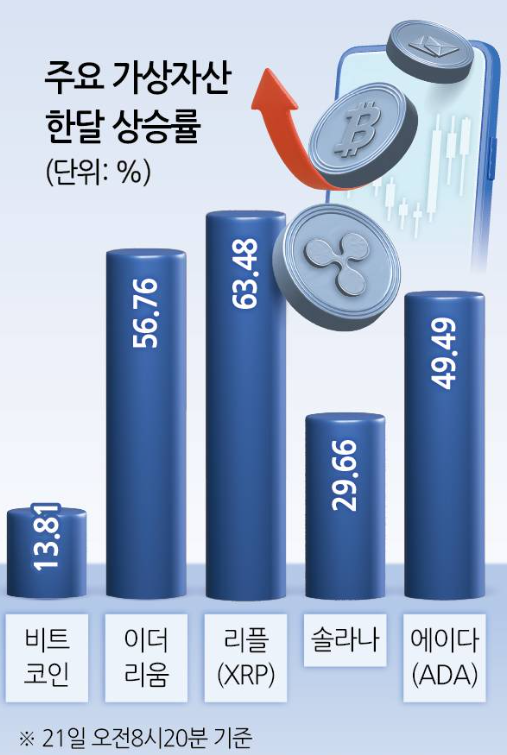 한 달새 60%대 상승한 가상자산