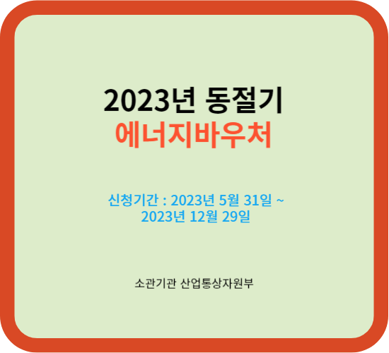 어느덧 2023년도 10월 중순이 지나면서 일교가 심해지고 따뜻한 것을 찾는 계절이 왔습니다. 이때가 되면 에너지 취약 계층의 서민들은 한가지 걱정이 더해 집니다. 이에 정부는 에너지 구입의 경제적 부담을 덜어주기 위하여 에너지 바우처 제도를 시행하고 있습니다. 에너지바우처 제도는 국민 모두가 따뜻한 겨울을 보낼 수 있도록 에너지 취약계층을 위해 에너지바우처(이용권)를 지급하여 전기, 도시가스, 지역난방, 등유, LPG, 연탄을 구입할 수 있도록 지원하는 제도로서 대한민국 ‘국민기초생활보장법’에 따라 에너지 소약계층이 시원한 여름과 따뜻한 겨울을 보낼수 있도록 하기 위한 지원 제도입니다.