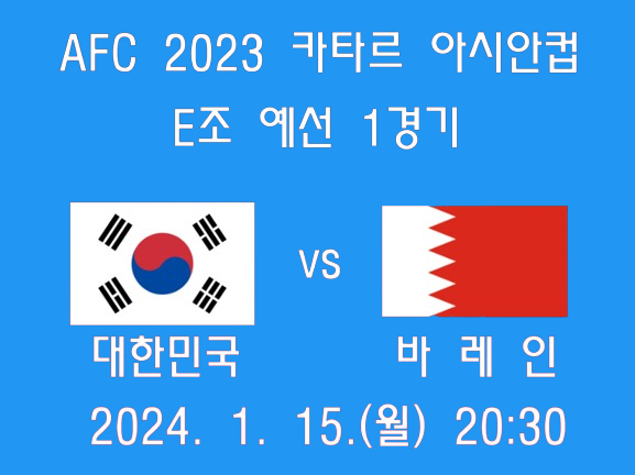 2023 AFC 아시안컵 카타르에서 대한민국은 바레인, 요르단, 말레이시아와 함께 E조에 편성되어 예선을 치르게 된다. 역대 가장 강한 스쿼드라는 평가도 받고 있는 대한민국이 큰 무리 없이 조 1위로 16강에 진출할 가능성이 높다. 이번 포스팅에서는 아시안컵 E조 각국의 팀전력 및 대한민국과의 경기 일정에 대해 알아보도록 할 것이다.