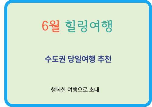 6월 수도권 당일여행으로 적합한 트래킹 및 자연경관이 우수한 장소 정리한 안내입니다.